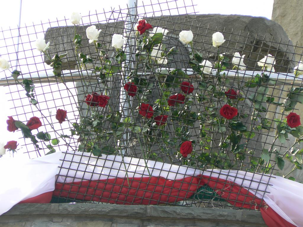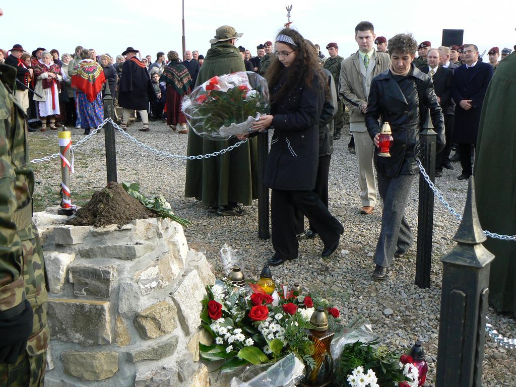 A potem wokół Kurhanu zostały złożone wiązanki kwiatów, zapłonęły znicze, a zebrani odśpiewali Rotę.