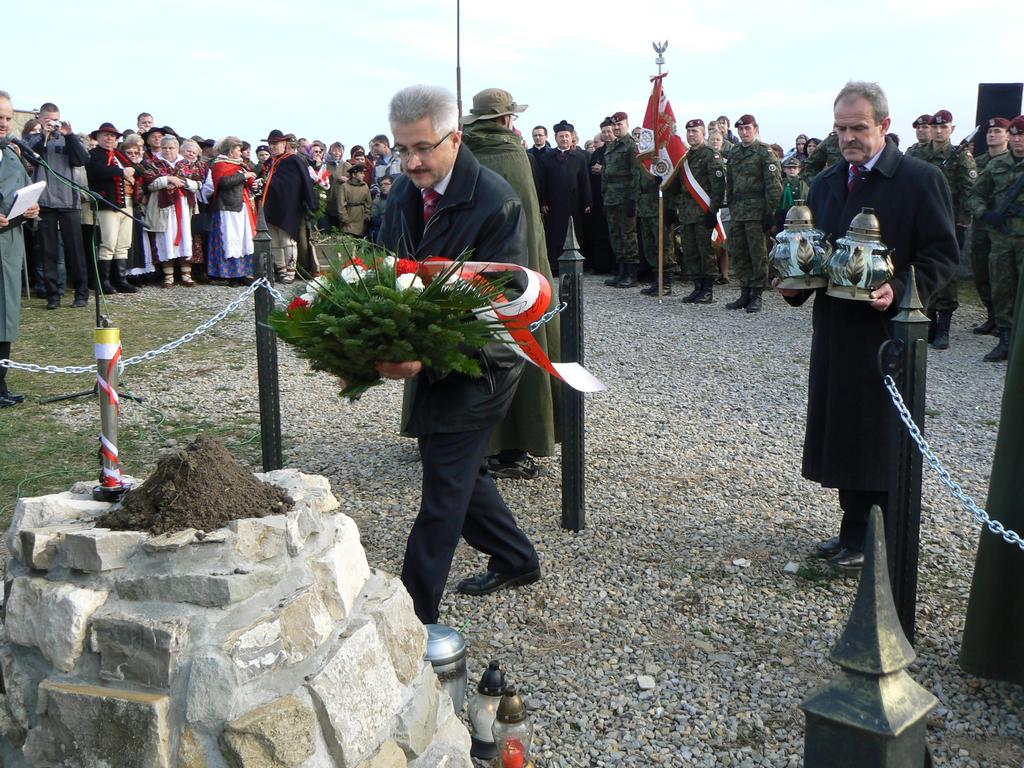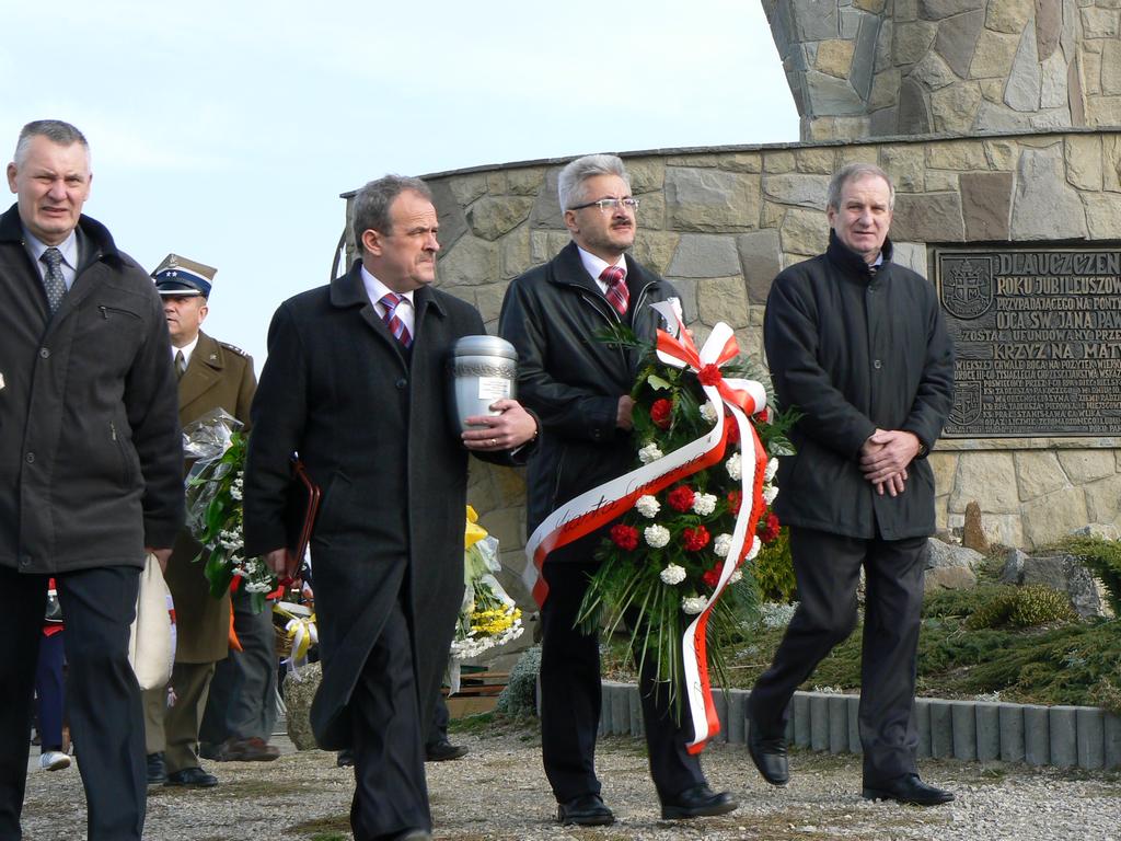W historię tamtych czasów, w oparciu o oglądane inscenizacje wprowadził nas Kuba Abrahamowicz – aktor Teatru Polskiego. Wysłuchawszy tego opowiadania, pełni zadumy licznie zebrani uczestnicy uroczystości przywitali: Ks. Biskupa Tadeusza Rakoczego wraz z przybyłymi kapłanami, Delegację z Gniezna, Pana S.Jakubowskiego z Gronia Jana Pawła II, Delegację z Byczyny, Samorządowców, Kombatantów, Kompanię Honorowa Wojska Polskiego, oraz liczne Poczty Sztandarowe.