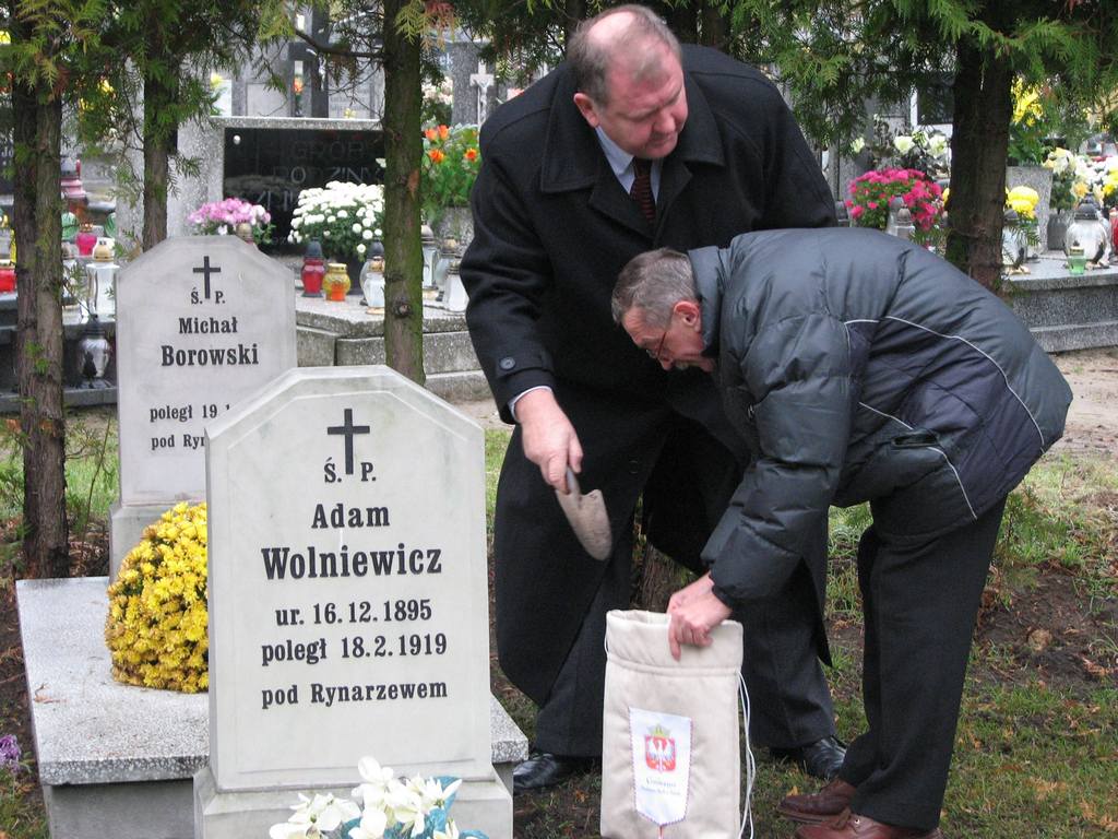 Kolejna część uroczystości to dosypanie do powstałego w 2005r. Kurhanu Pamięci Narodowej, ziemi z grobów Powstańców Wielkopolskich i z Gronia Jana Pawła II. Zebrani po przejściu do Kurhanu przy wtórze orkiestry, odśpiewali Hymn Państwowy, a wysoko w górę poszybowała biało czerwona flaga – radośnie łopocąc na wietrze.