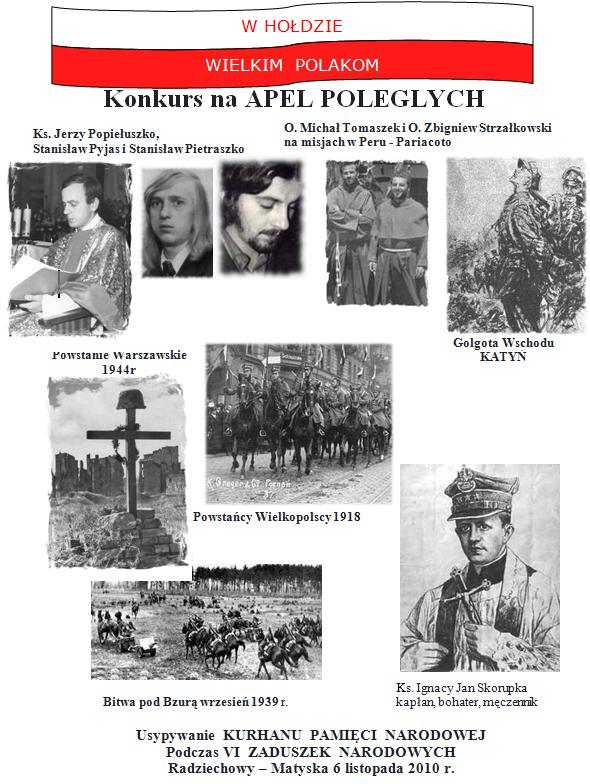 II. Zwycięzca konkursu wraz z opiekunem zostanie zaproszony 6.11.2010 r. na Zaduszki Narodowe do Radziechów, podczas których będzie odczytany Apel Poległych wyłoniony w Konkursie.