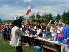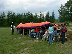 • Akademii Sekretów – wprawdzie sekretów nie powinno się zdradzać, ale co tam, powiem, zawodnikom udało się zdobyć Tajemniczy Zamek Pana Kleksa, do którego wiódł zakręcony, pokręcony, czy jak go zwał, labirynt, i znów w tajemnicy dodam, że i zamek i labirynt zbudowane były z siana. A na końcu labiryntu czekała ogromna stonoga, która przygarnęła nas wszystkich i zaprowadziła, wprawdzie nie na pierogi do Białej, lecz na pyszny żurek ugotowany przez Panie z Koła Gospodyń Wiejskich, a przywieziony na sygnale, musowo by nie wystygnął, przez niezawodną OSP