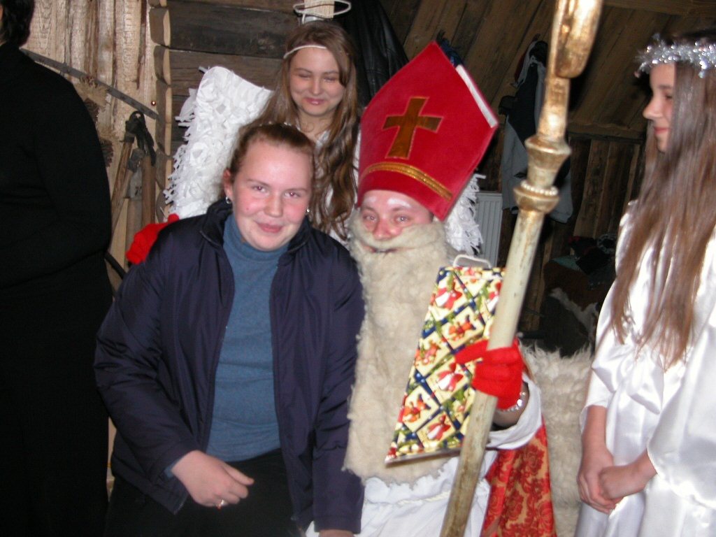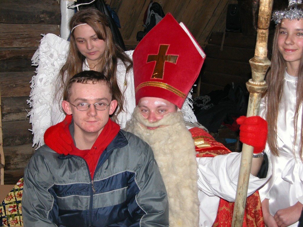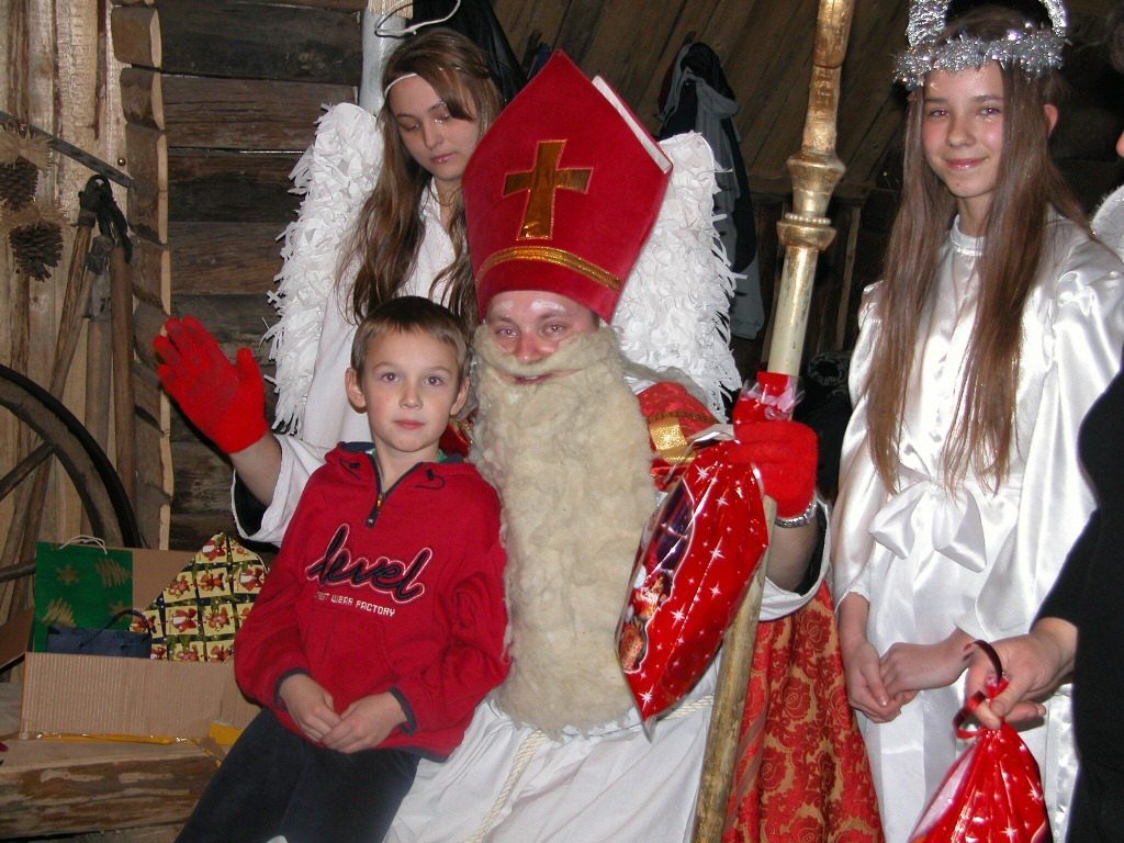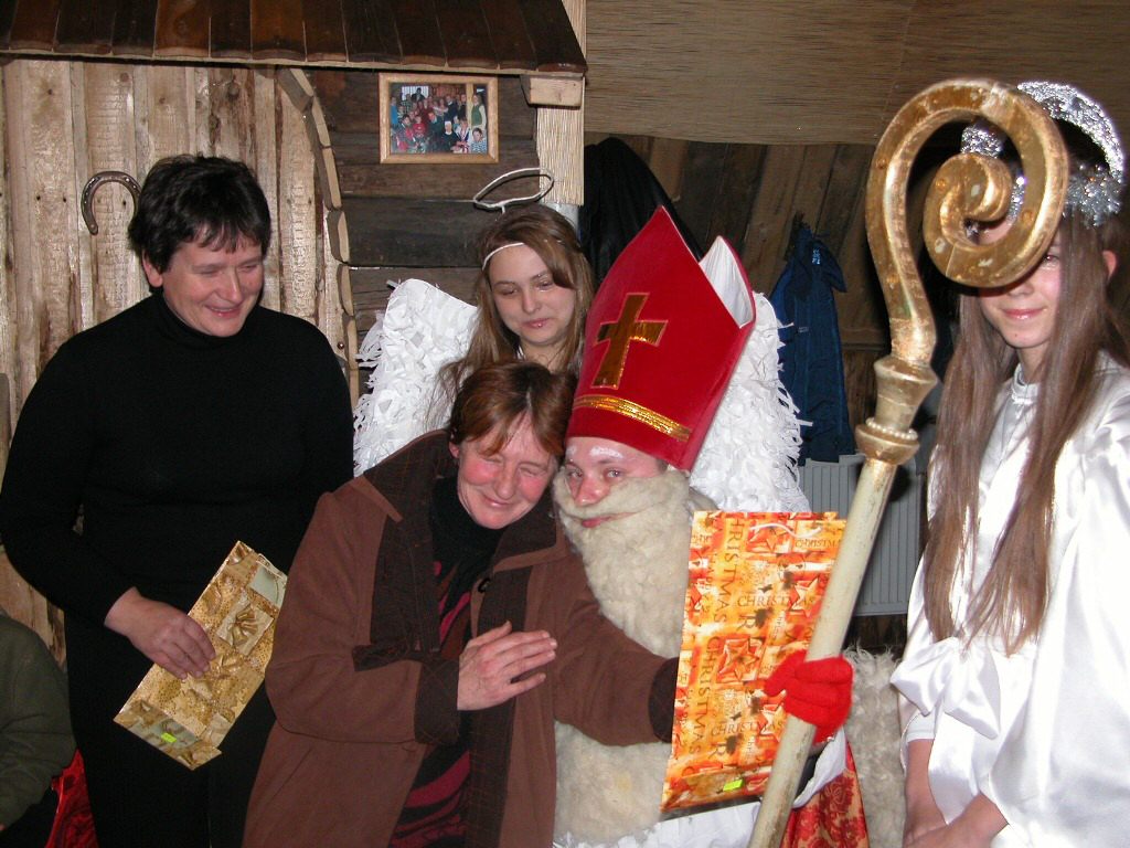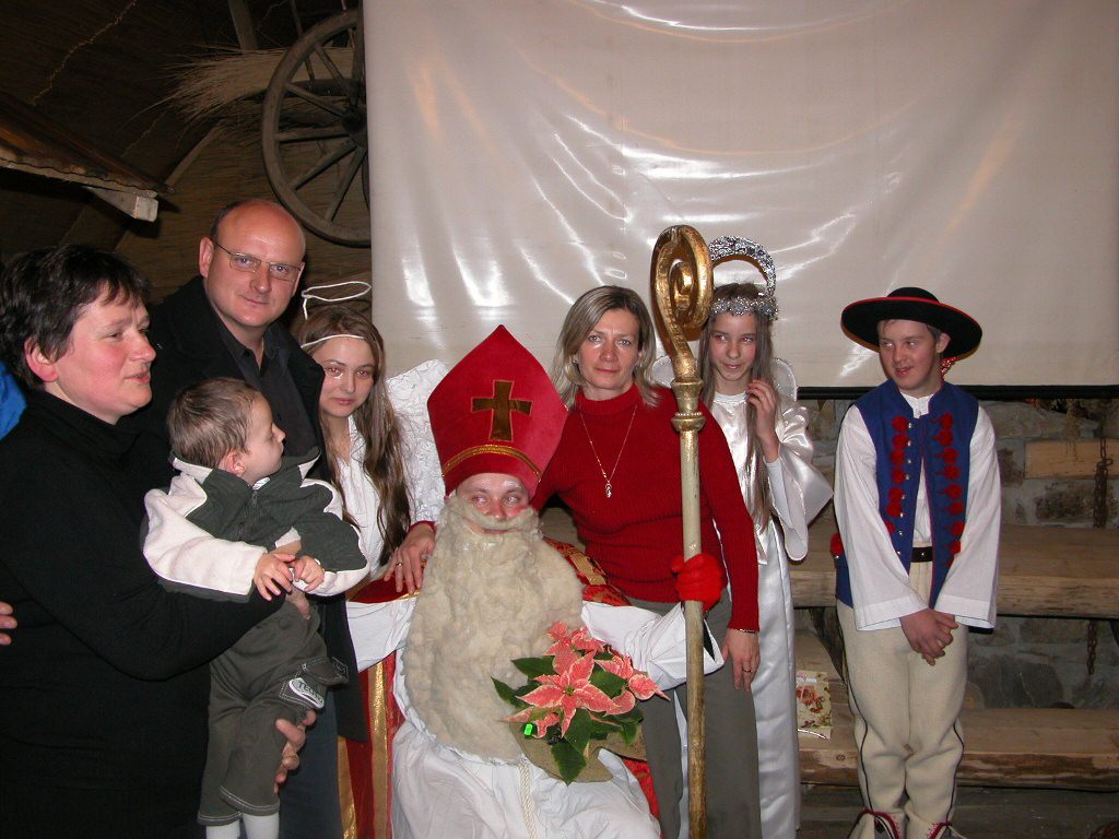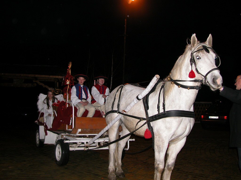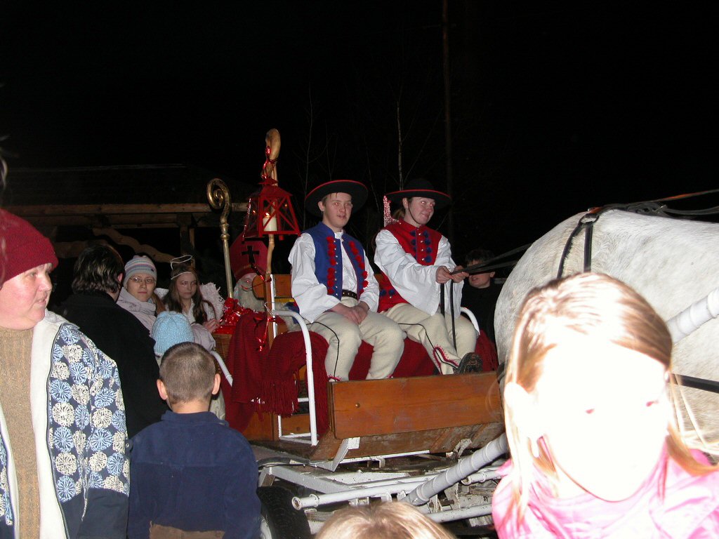 Tą drogą chcemy podziękować Państwu Ewie i Jarkowi Piecuch oraz ich wspaniałym synom: Piotrowi i Markowi, za organizowanie co roku spotkania ze św. Mikołajem. Dzięki ich staraniom, Sędziwy Staruszek przyjeżdża na saniach zaprzężonych w piękne rumaki. Asystują mu Aniołowie i Górale, ci drudzy pewnikiem jadom co by Jegomość św. Mikołajka nie zmylił duktu i pacek nie potracił. HEJ