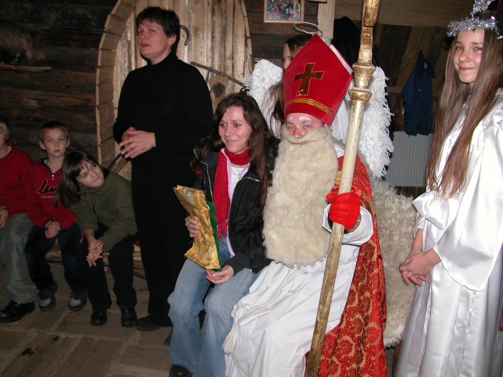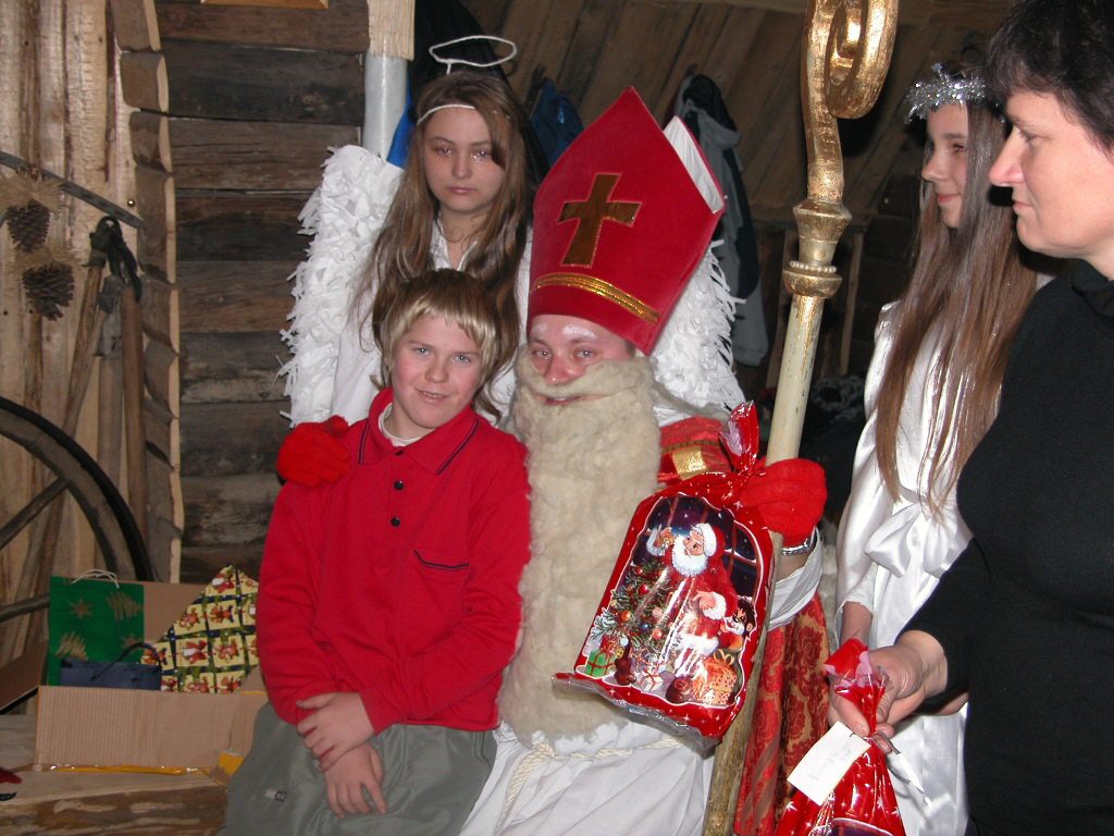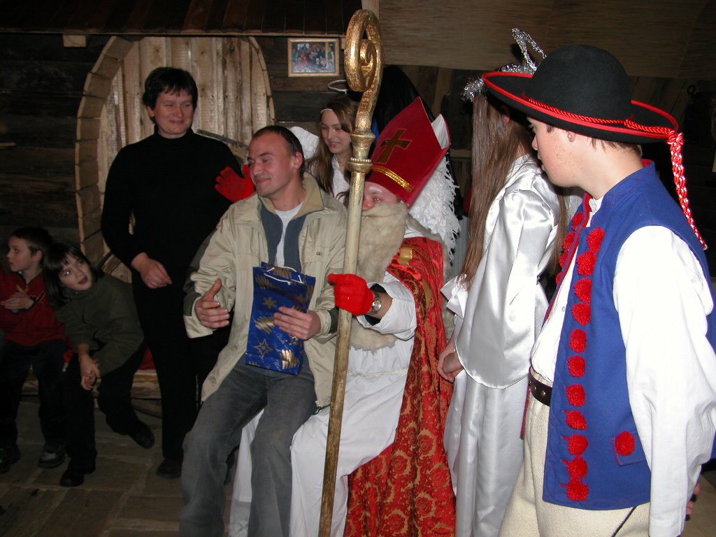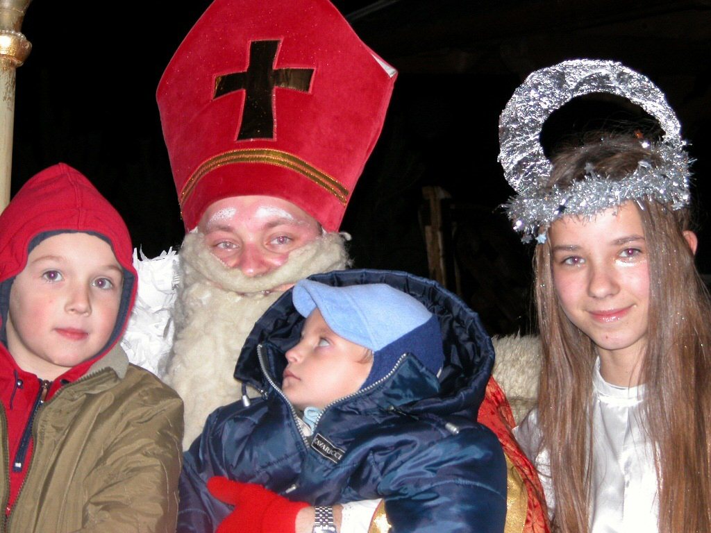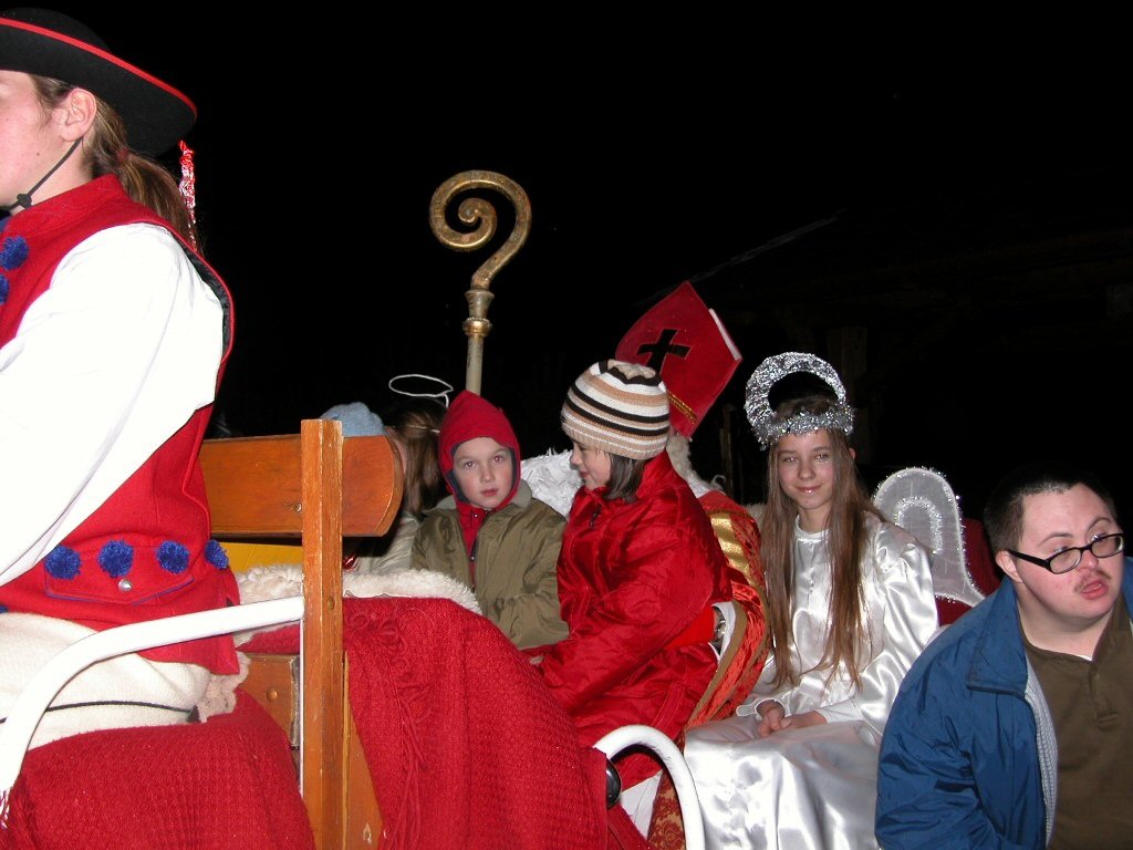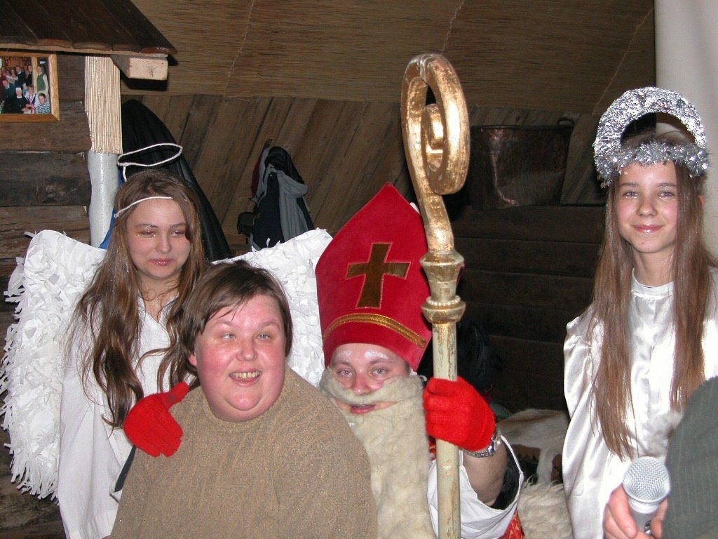 Tą drogą chcemy podziękować Państwu Ewie i Jarkowi Piecuch oraz ich wspaniałym synom: Piotrowi i Markowi, za organizowanie co roku spotkania ze św. Mikołajem. Dzięki ich staraniom, Sędziwy Staruszek przyjeżdża na saniach zaprzężonych w piękne rumaki. Asystują mu Aniołowie i Górale, ci drudzy pewnikiem jadom co by Jegomość św. Mikołajka nie zmylił duktu i pacek nie potracił. HEJ