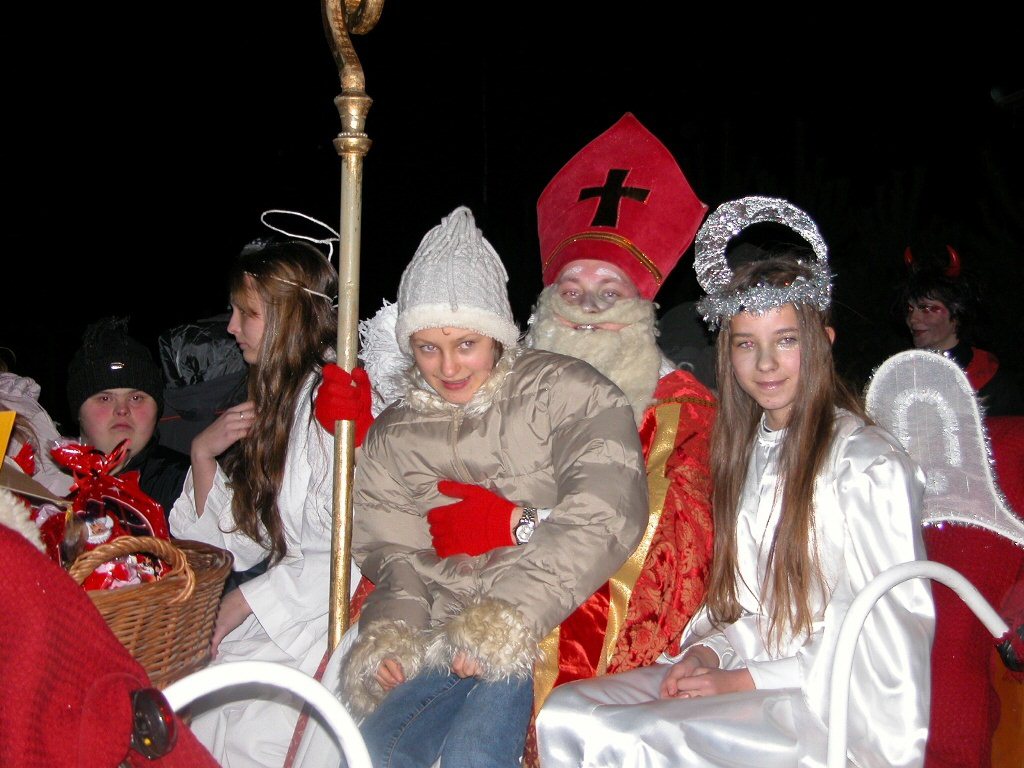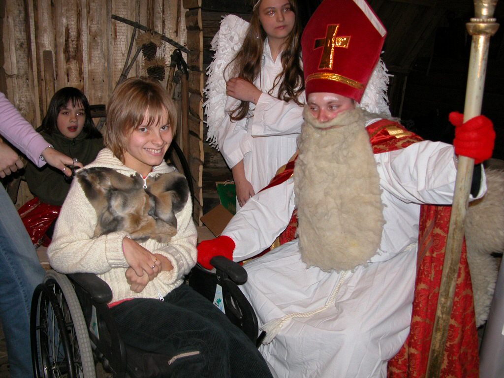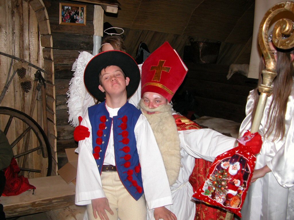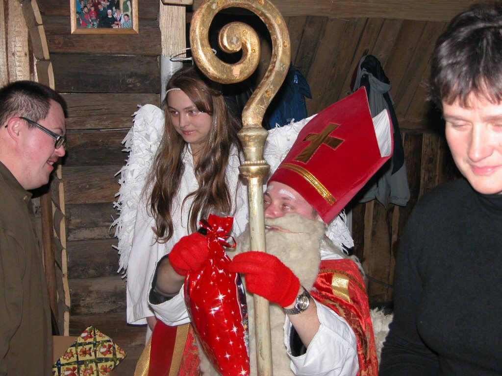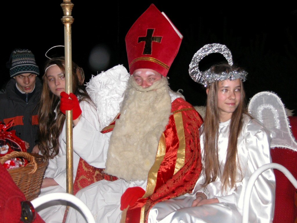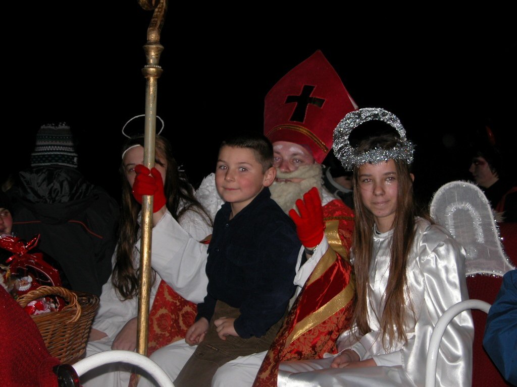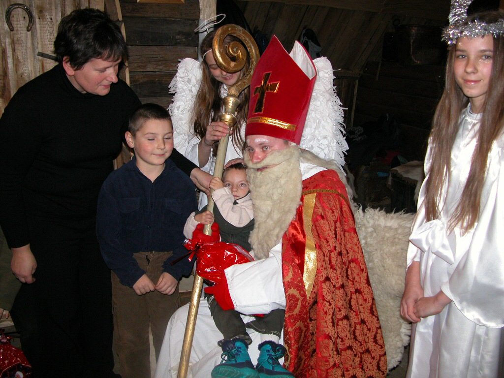 Tą drogą chcemy podziękować Państwu Ewie i Jarkowi Piecuch oraz ich wspaniałym synom: Piotrowi i Markowi, za organizowanie co roku spotkania ze św. Mikołajem. Dzięki ich staraniom, Sędziwy Staruszek przyjeżdża na saniach zaprzężonych w piękne rumaki. Asystują mu Aniołowie i Górale, ci drudzy pewnikiem jadom co by Jegomość św. Mikołajka nie zmylił duktu i pacek nie potracił. HEJ