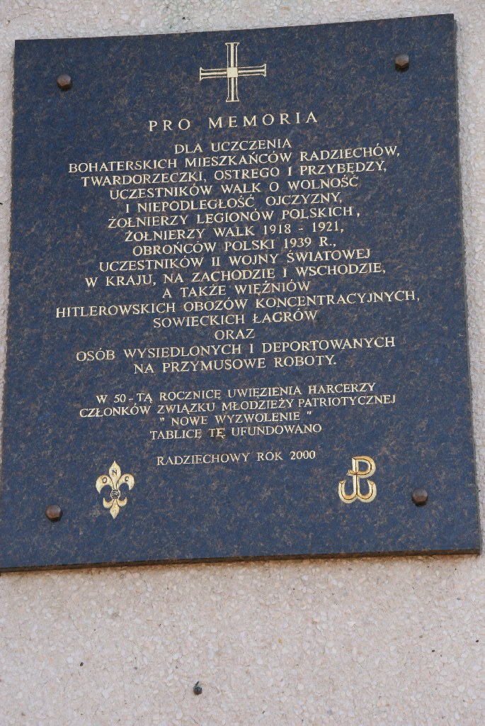 W 2000 r. na Radziechowskim kościele została wmurowana pamiątkowa tablica w 50 rocznicę uwięzienia harcerzy, głównym inicjatorem tych uroczystości był ówczesny Ks. Prałat Stanisław Gawlik wieloletni (40lat) Proboszcz Parafii Św. Marcina w Radziechowach.