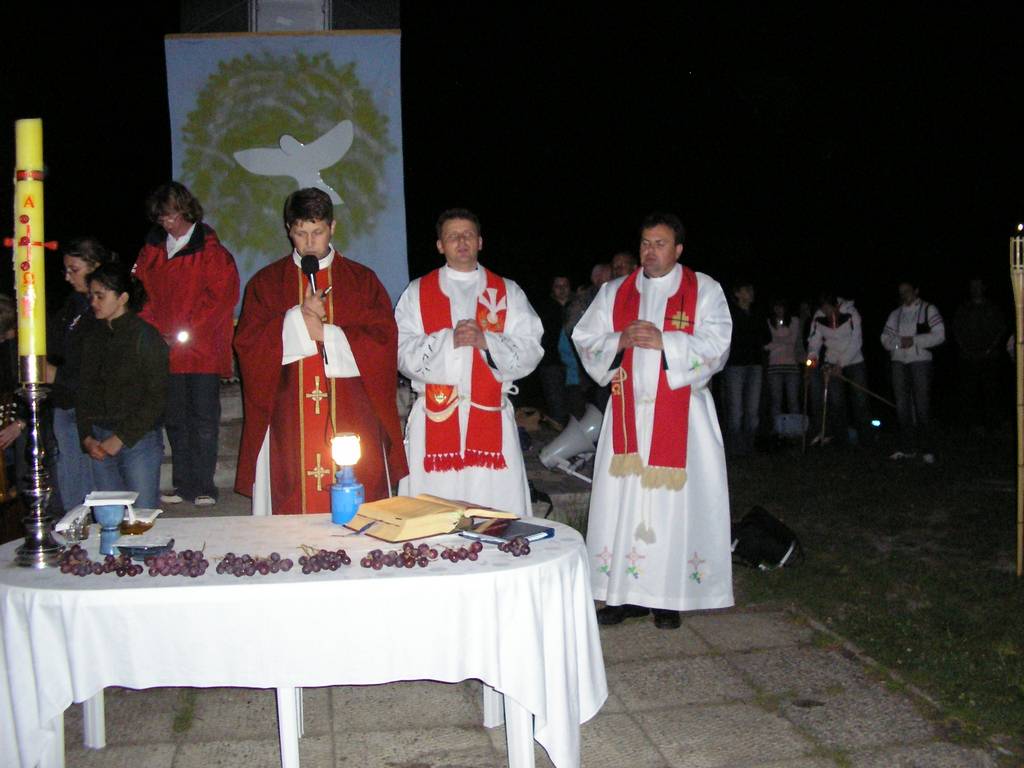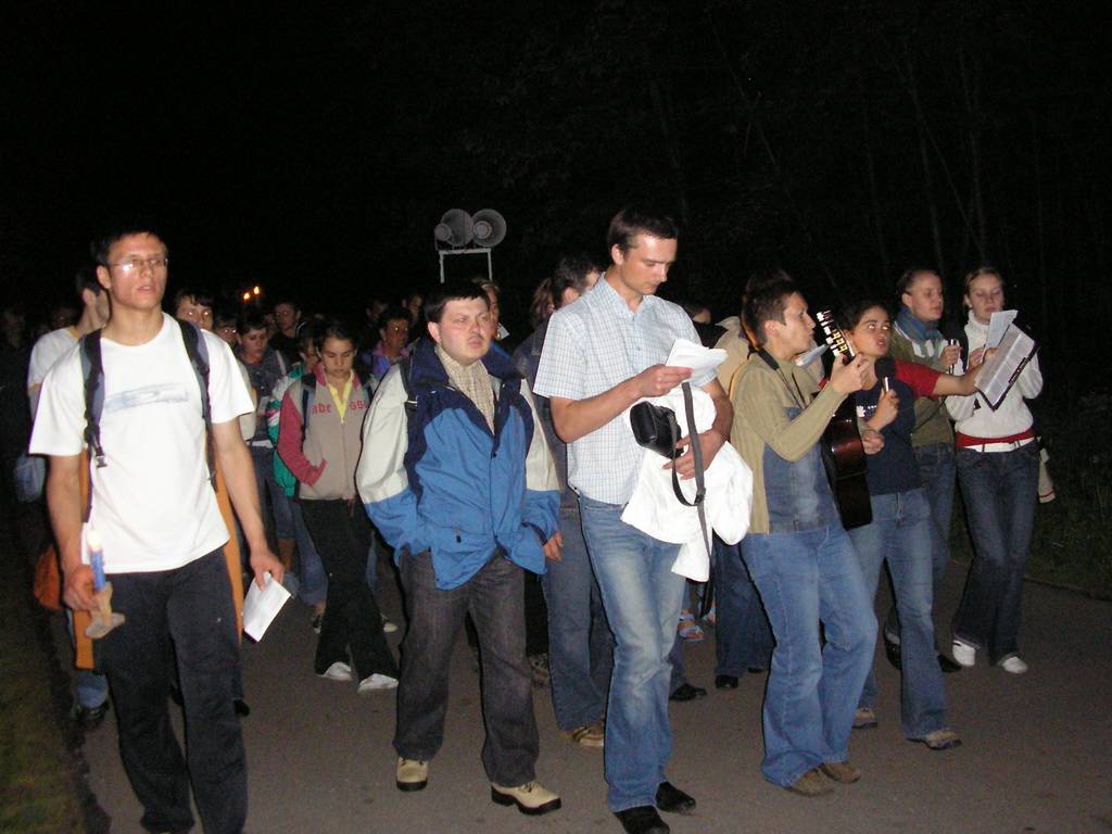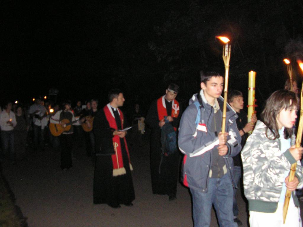 Proste, ale zarazem bardzo przemyślane, głębokie w treści rozważania tajemnic Drogi Światła, nie czytane, ale mówione tak od serca. Piękna oprawa muzyczna; gitary i flet. Msza Św. na szczycie góry – tak blisko nieba. Migocące światła świec i pochodni, migocące w oddali światła pogrążonego we śnie miasta Żywca, zawieszony na granacie nieba księżyc i dochodzące dźwięki muzyki bawiących się tej nocy ludzi, sprawiały tak niepowtarzalną atmosferę, że każdy czuł się szczęśliwy z możliwości bycia w tym właśnie miejscu. Nie odczuwało się zmęczenia, nie chciało się wracać. Mimo późnej pory 2:15 młodzież rozpaliła ognisko i przystąpiła do smażenia jajecznicy. (Na pewno pobili w tej konkurencji rekord Guinessa.) Jedni smażyli, a inni radowali się i śpiewem wielbili Pana.