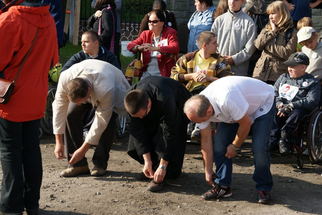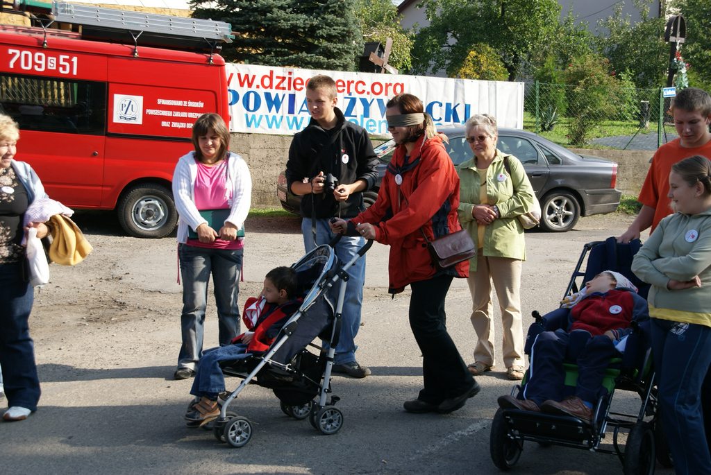 Na drugi szlak – żółty wyruszyli: jadący na wózkach inwalidzkich, małe dzieci z rodzicami i osoby starsze. Tutaj również, każda grupa musiała wykonać dziesięć zadań; od strzelenia ping pongiem do otwartej paszczy lwa, przez przejście przez tunel, skakanie, lub czołganie w worku, oddzielanie guzików to zabawa w Kopciuszka, układanie puzzli, do robienia kwiatów z bibuły włącznie. Warto dodać, że w tym roku nikt nie korzystał z niebieskiego szlaku – bezpośredni przejazd na górę Matyske, a to wszystko dzięki dużej liczbie wolontariuszy, którzy pomogli wózkowym pokonać całą trasę.