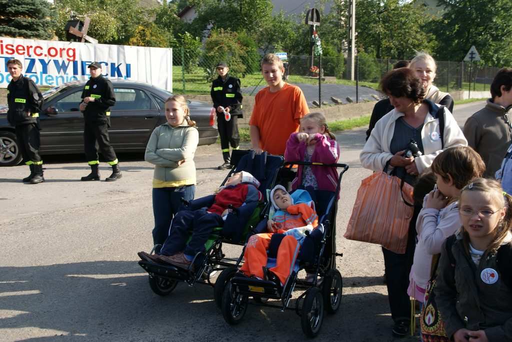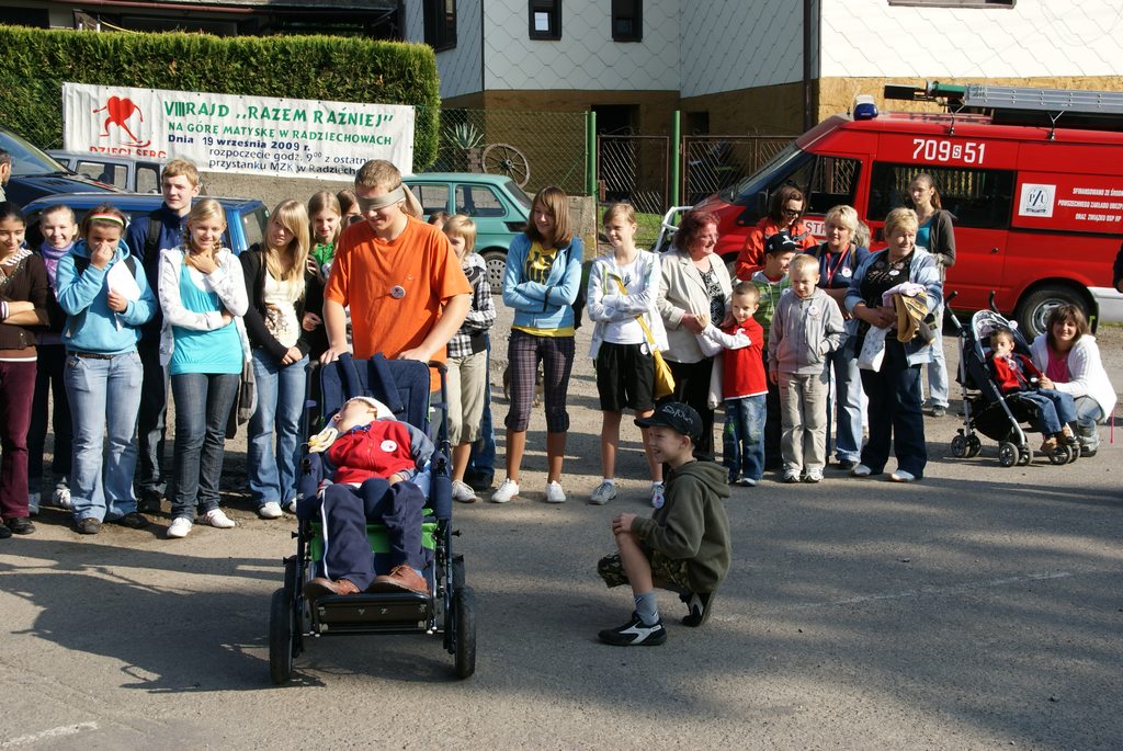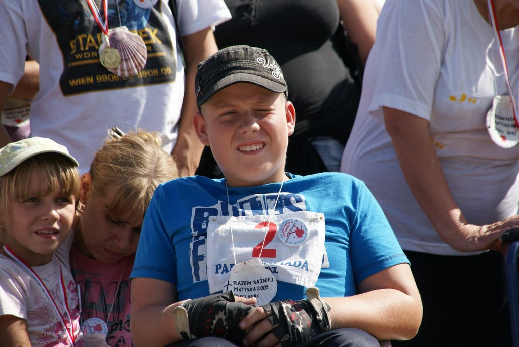 Które to spotkanie? Już VIII. Jak ten czas leci. Nasi uczestnicy to już dorośli ludzie. Oj nazwa Dzieci Serc już do nas nie pasuje, ale radosne figlarne uśmiechy i ochota do zabawy ciągle taka sama. I chociaż brak tych, którzy pomagali przy pierwszych Rajdach; Ks. Prałata Stanisława Gawlika, Szczepana… to przychodzą na ich miejsce nowi i organizowany jest kolejny już Rajd. I właśnie to jest cudowne. Za każdym razem wydaje się, że nic nie jest w stanie nas zaskoczyć, a jednak docierają do nas kolejne grupy i jesteśmy zaskakiwani ich postawą. W zeszłym roku zawodnicy z ,,Ostoi” podbili nasze serca i dali nam ogromną dawkę siły – co najmniej kilkaset omów J między innymi na wózku niewidoma dziewczynka, startowała w wyścigach i bardzo cieszyła się z owacji jakie zgotowała jej licznie zebrana publiczność, w tym roku natomiast dołączyła do nas dorosła kobieta, niewidoma od trzech lat Ewa, ale ile w niej było ciepła radości z wykonywanych czynności….. była to dla nas wyjątkowa lekcja.