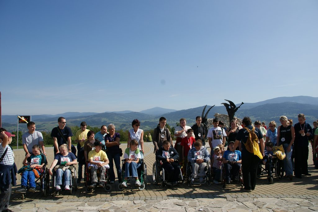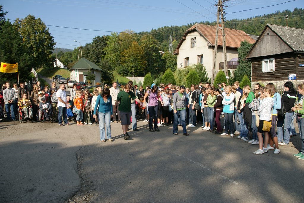 Tradycyjnie od ośmiu lat, we wrześniu, na placu przy pierwszej stacji ,,Golgoty Beskidów” spotkali się przedstawiciele dwóch światów. Jeden świat to ludzie zdrowi, silni, korzystający z wszelkich dóbr, które są im dostępne i drugi świt to ci, którzy żyją z różnego typu dysfunkcjami. Ci pierwsi, podzieleni na dziesięcioosobowe patrole, bez trudu pokonali szlak czerwony, na którym wykonywali na czas zadania: układali na butelce studnię z zapałek, wieszali klamerki na liściach z drzew, odszukiwali w lesie drzew posmarowanych czosnkiem, oddzielali różne kolory guzików, czołgali się pod zasiekami, słuchając podkładu muzycznego pieśni patriotycznych, odgadywali tytuły pieśni, przechodzili po linie rozwieszonej pomiędzy drzewami, pokonywali bagienko, a na koniec mając do dyspozycji chleb i dary natury, tworzyli pomnik poświęcony ofiarom pomordowanym przez sowietów podczas II Wojny Światowej.
