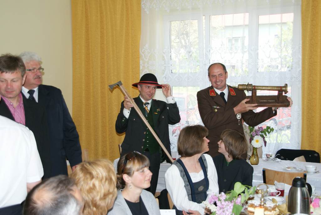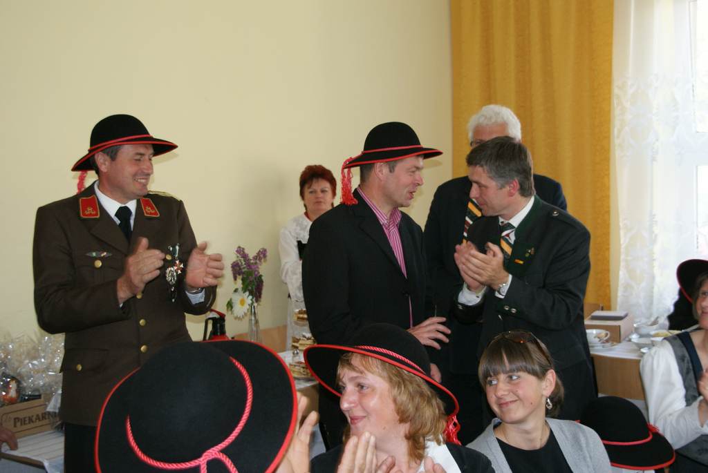 W niedzielę po uroczystej Mszy Św. i po wyśmienitym obiedzie przygotowanym przez KGW z Przybedzy, nastąpiła niesamowita ceremonia obdarowywania się upominkami, którym towarzyszyły okolicznościowe przemówienia. Jedno jest pewne, że tak jak zaznaczył Burmistrz Raabau, Unia to nie kraje czy rządy, lecz ludzie i to najważniejsze byśmy byli dla siebie braćmi. Były łzy radości i wzruszeń. A najwspanialszy widok był wówczas, gdy goście przystrojeni w pamiątkowe góralskie kapelusze z ciupagami w dłoniach nie przypominali Austriaków, ale naszych Janosików.