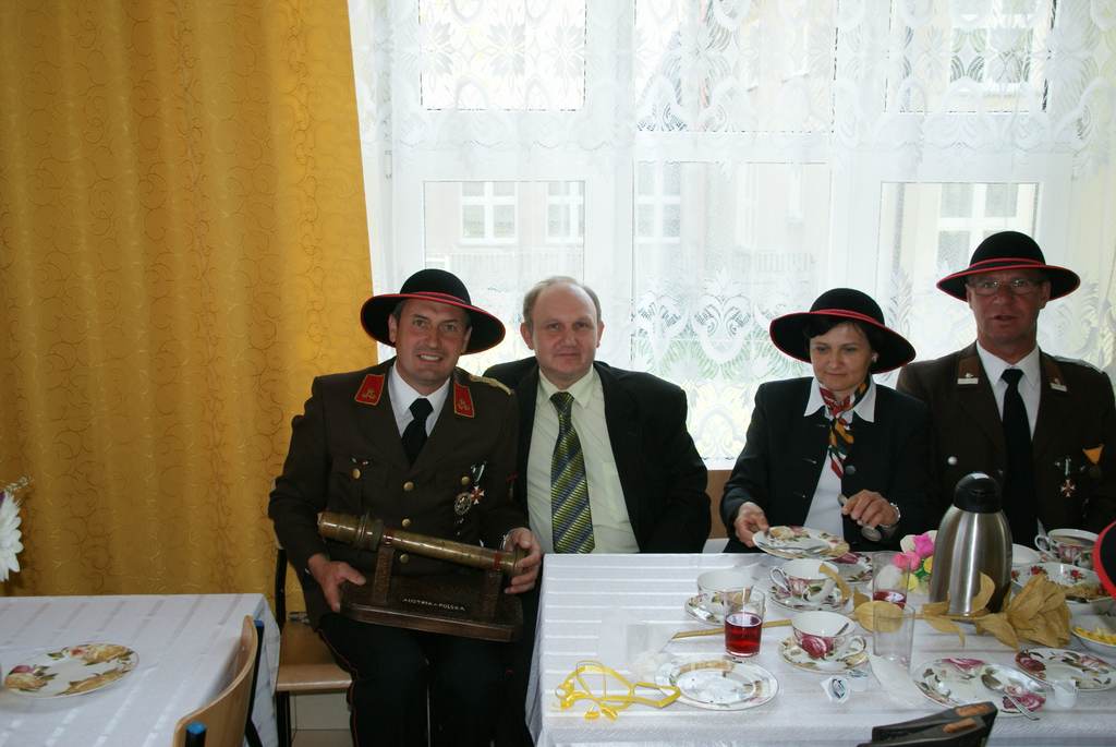 I tak dzięki niezwykłej operatywności J. Pawlusa do Przybędzy przyjechała grupa 26 strażaków wraz z burmistrz Raabau- Franz Uller. Goście w ciągu trzy dniowego pobytu na Ziemi Żywieckiej zwiedzili Żywiec, spotkali się z księżną Krystyną Habsburg, idąc Golgotą Beskidów dotarli na szczyt Matyski. Oprócz zwiedzania goście znaleźli czas na wspólne spotkania ze strażakami z Przybędzy, podczas których obejrzeli sprzęt gaśniczy, wymienili doświadczenia i oczywiście przeprowadzili mini zawody strażackie.