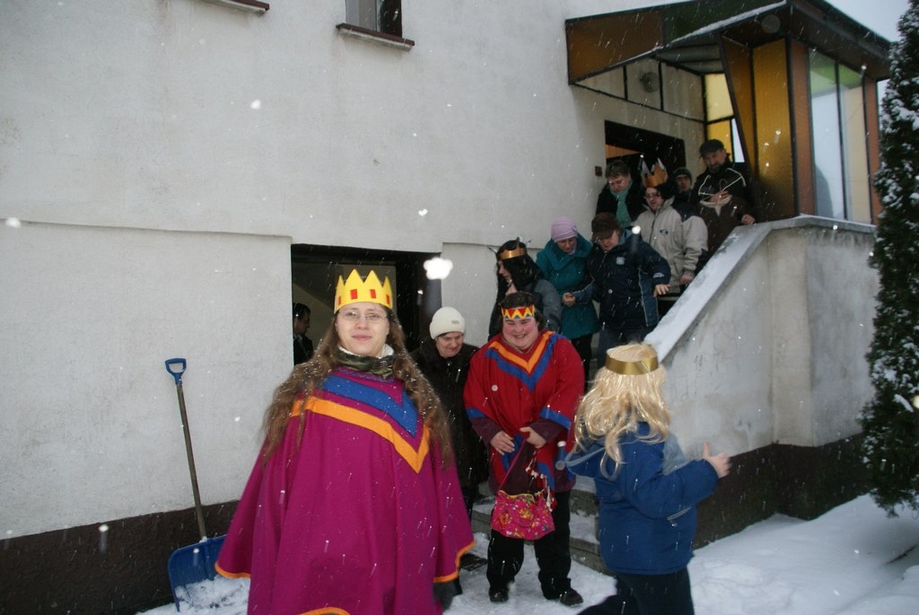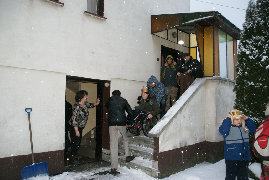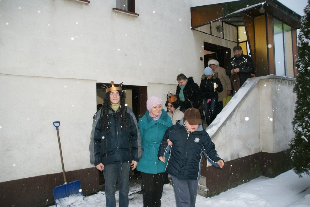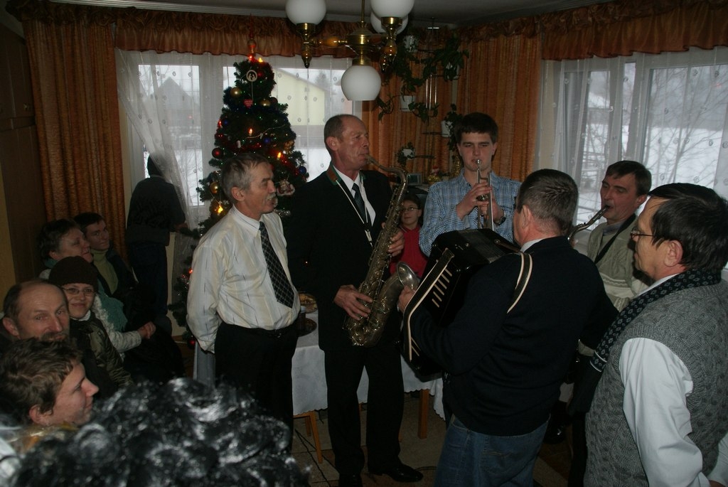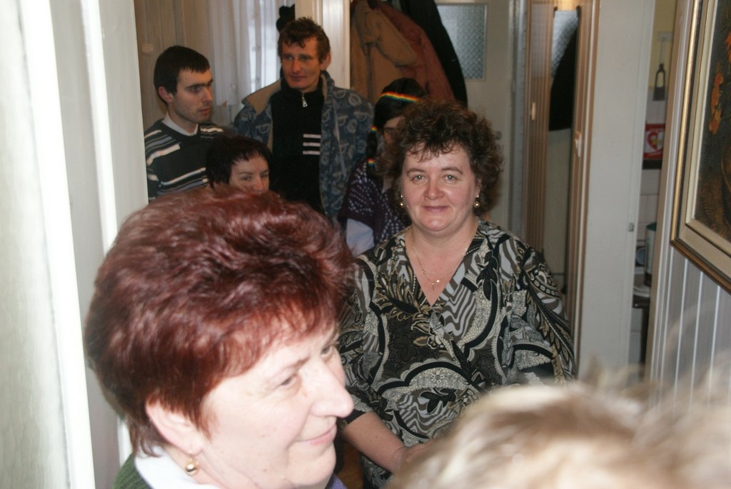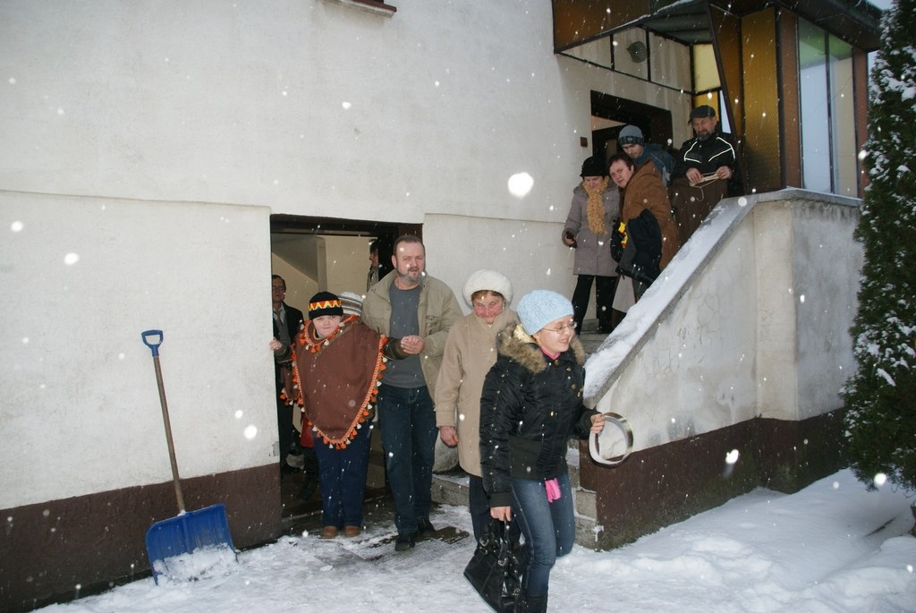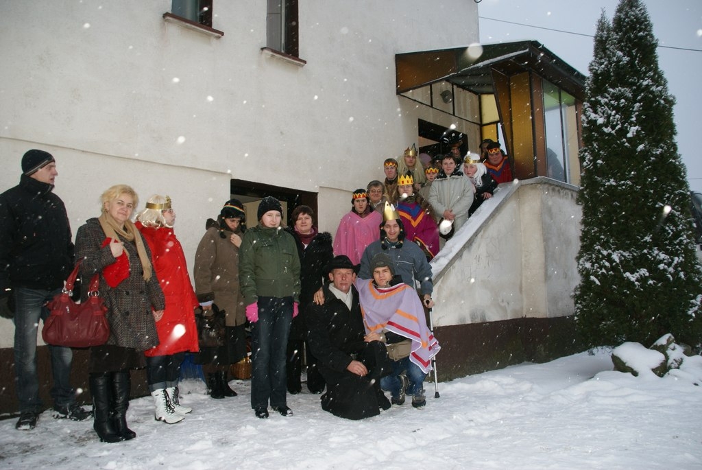Chcąc dobrze przygotować się do tego zadania, postanowiliśmy najpierw odwiedzić miejsca, w których jeszcze wiele ludzi pamięta o. Michała: rodzeństwo, rodzina, parafianie oraz duchowni z Łękawicy. Wybraliśmy czas świąteczny i rozpoczęliśmy kolędowanie. Wpierw odwiedziliśmy dom Marka Tomaszka, brata bliźniaka o. Michała. Czekała tam na nas cała rodzina i Ks. Krzysztof Ciurla – wikary z Łękawicy. Panie napiekły ciast i wypożyczyły nawet termos na herbatę J, cóż było nas tylko 52 osoby. Panowie natomiast, bardzo uzdolnieni muzycznie, uzbrojeni w harmonię, saksofony i trąbkę sprawili, że nawet my mogliśmy śpiewać. I to jak!